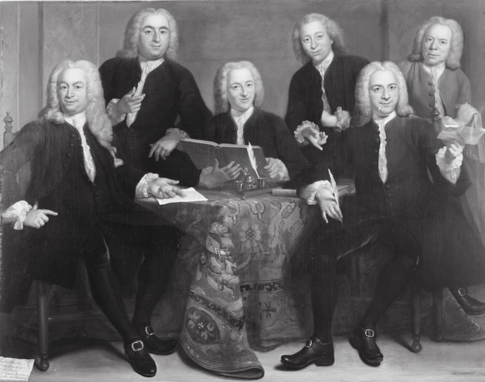 Zwart-wit foto van het schilderij dat gemaakt is door de schilder Arnold Boonen in 1728.