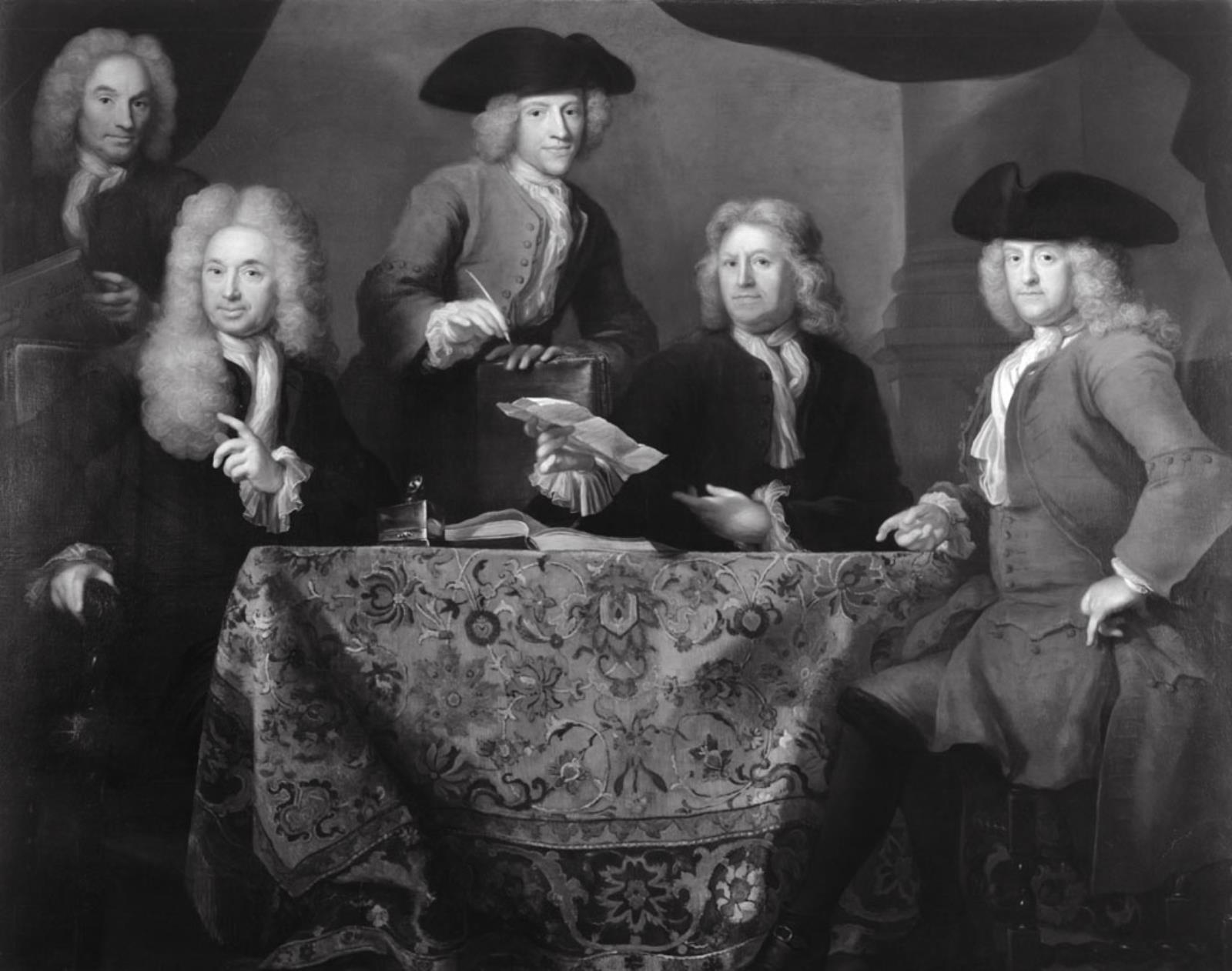 Zwart-wit foto van het schilderij dat gemaakt is door de schilder Arnold Boonen in 1725.
