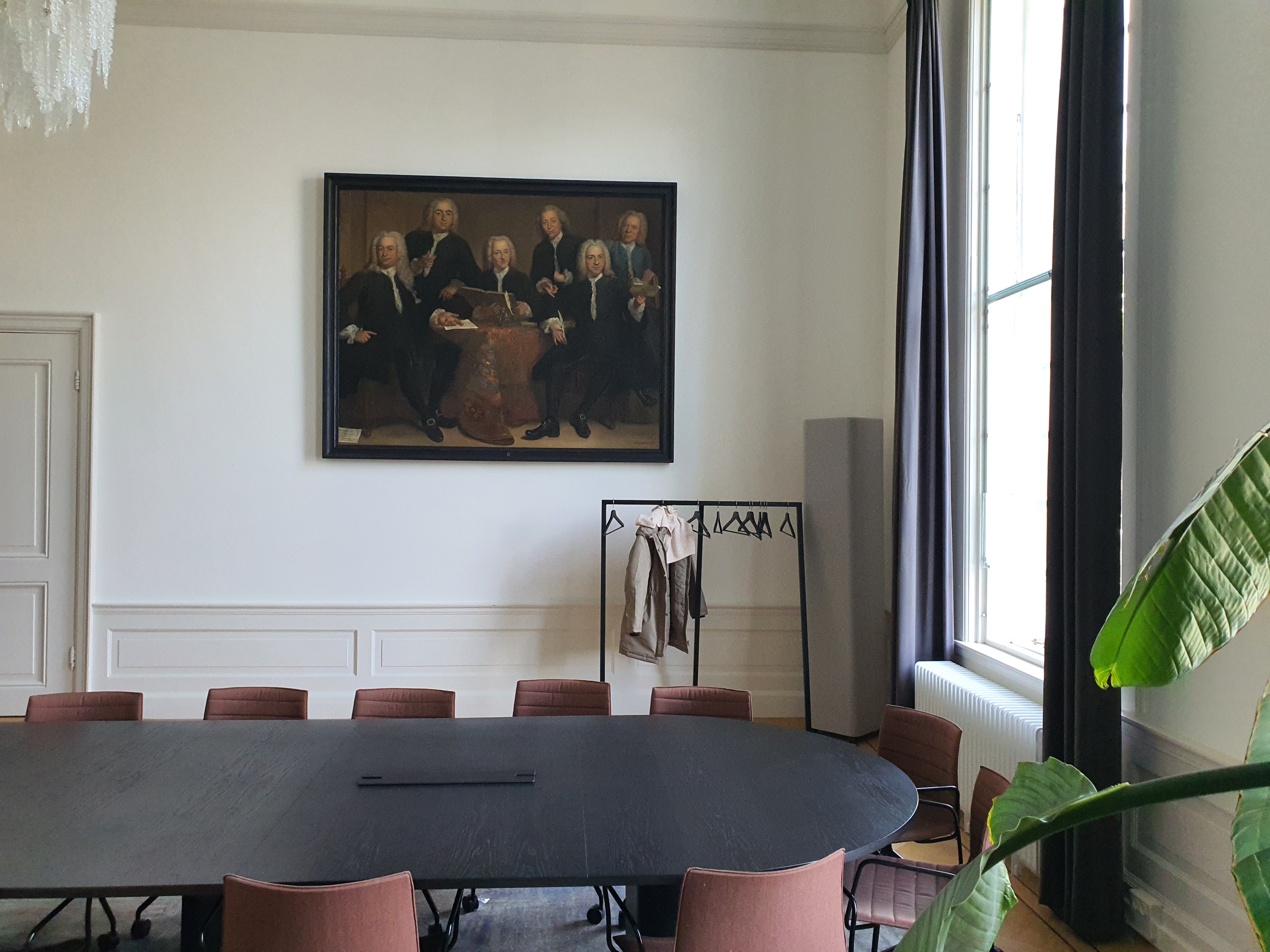 Het schilderij van Jan Maurits Quinkhard zoals het nu in het dr. Sarphatihuis hangt. Tijdens de vergaderingen kijken de regenten je vanuit de hoogte aan.