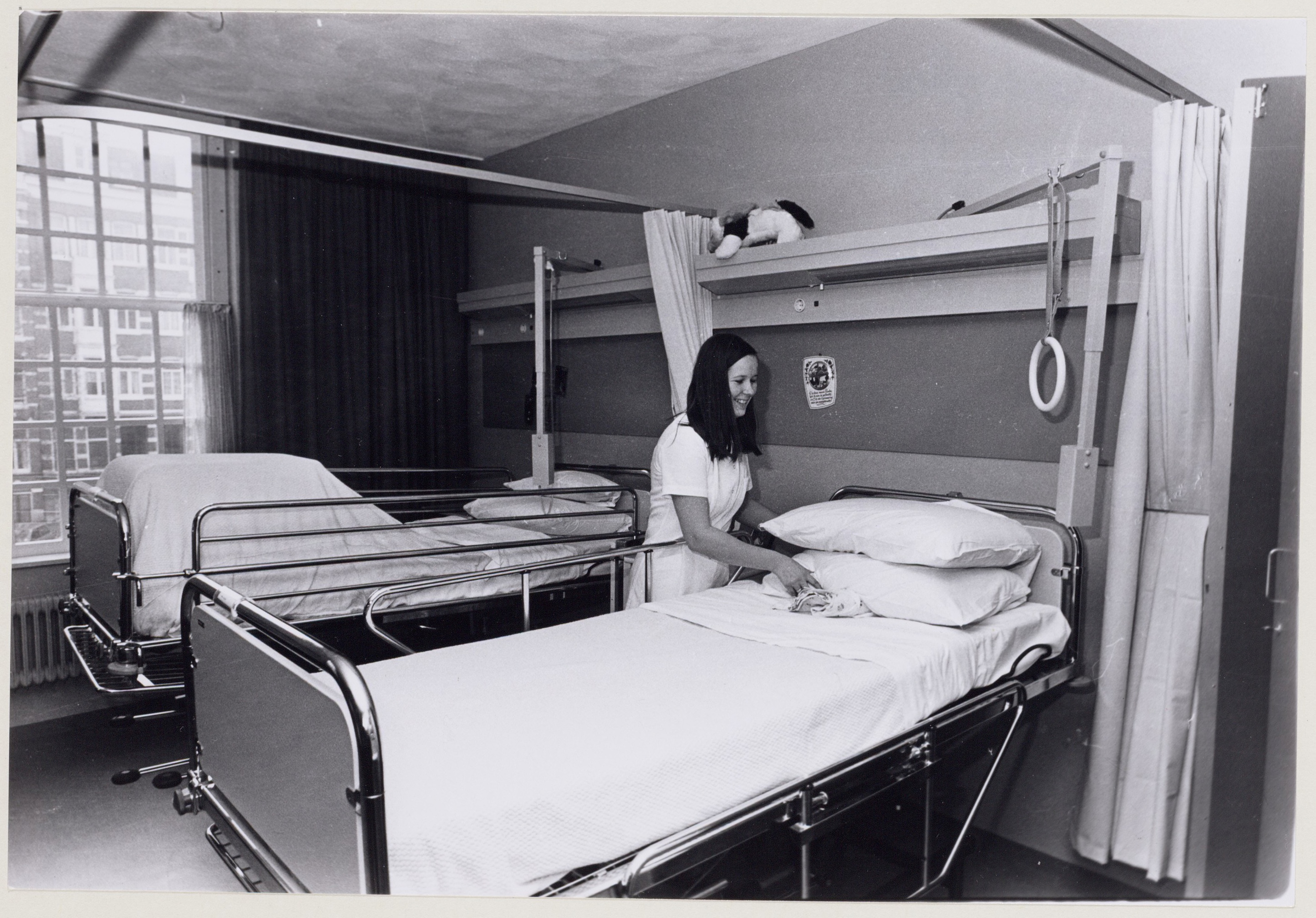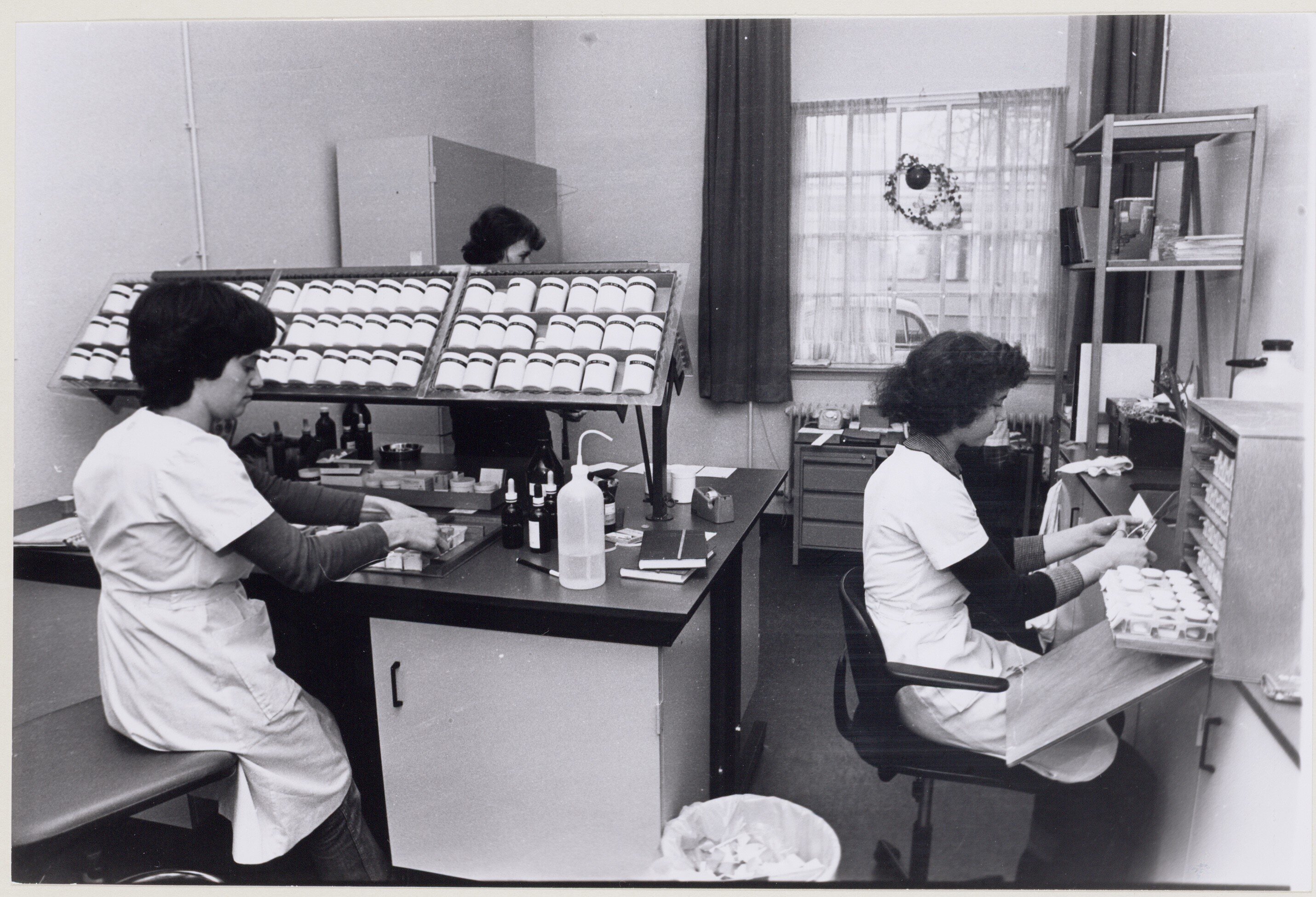 Verpleegkundigen zorgen voor medicatie. Foto is gemaakt op 15 februari 1979. Bron: Stadsarchief Amsterdam