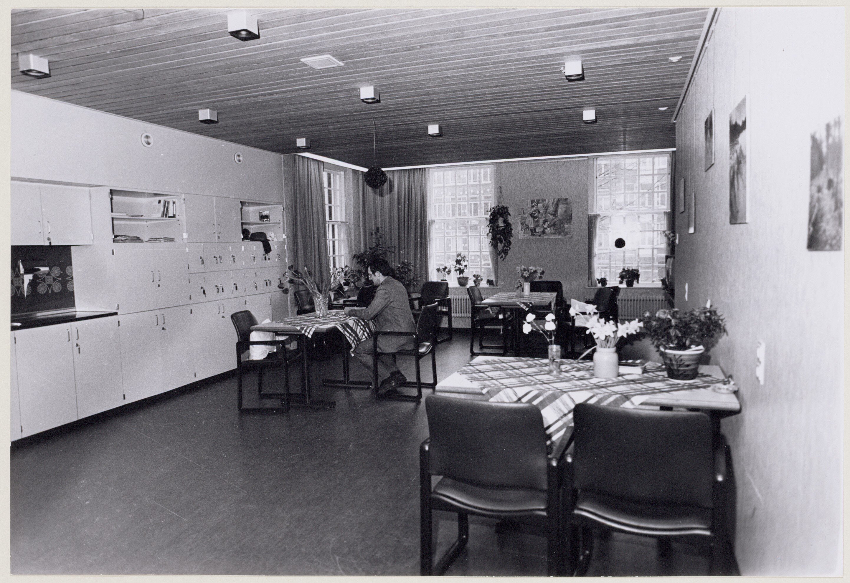 Verpleegtehuis van de gemeentelijke dienst voor bejaardenverzorging, gezien naar de eetkamer. Bron: Stadsarchief Amsterdam