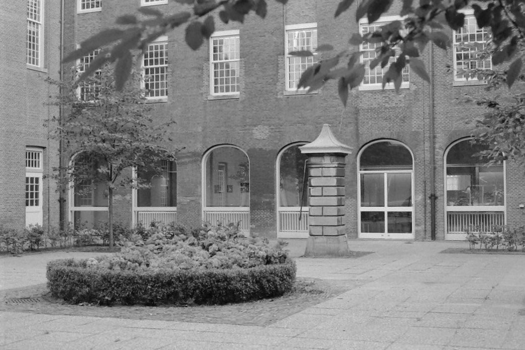 De binnenplaats van het Dr. Sarphatihuis in de jaren '80. Ook vandaag de dag vind je hier een mooie tuin.