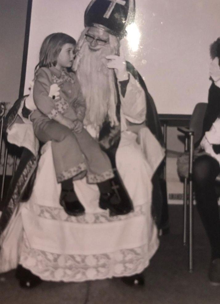 Op deze foto zie je Lia Edel op schoot bij Sinterklaas. Deze foto is gemaakt in het Gemeentelijk Verzorgingshuis voor Ouden van Dagen (nu Dr. Sarphatihuis), waar ze regelmatig als kind kwam.