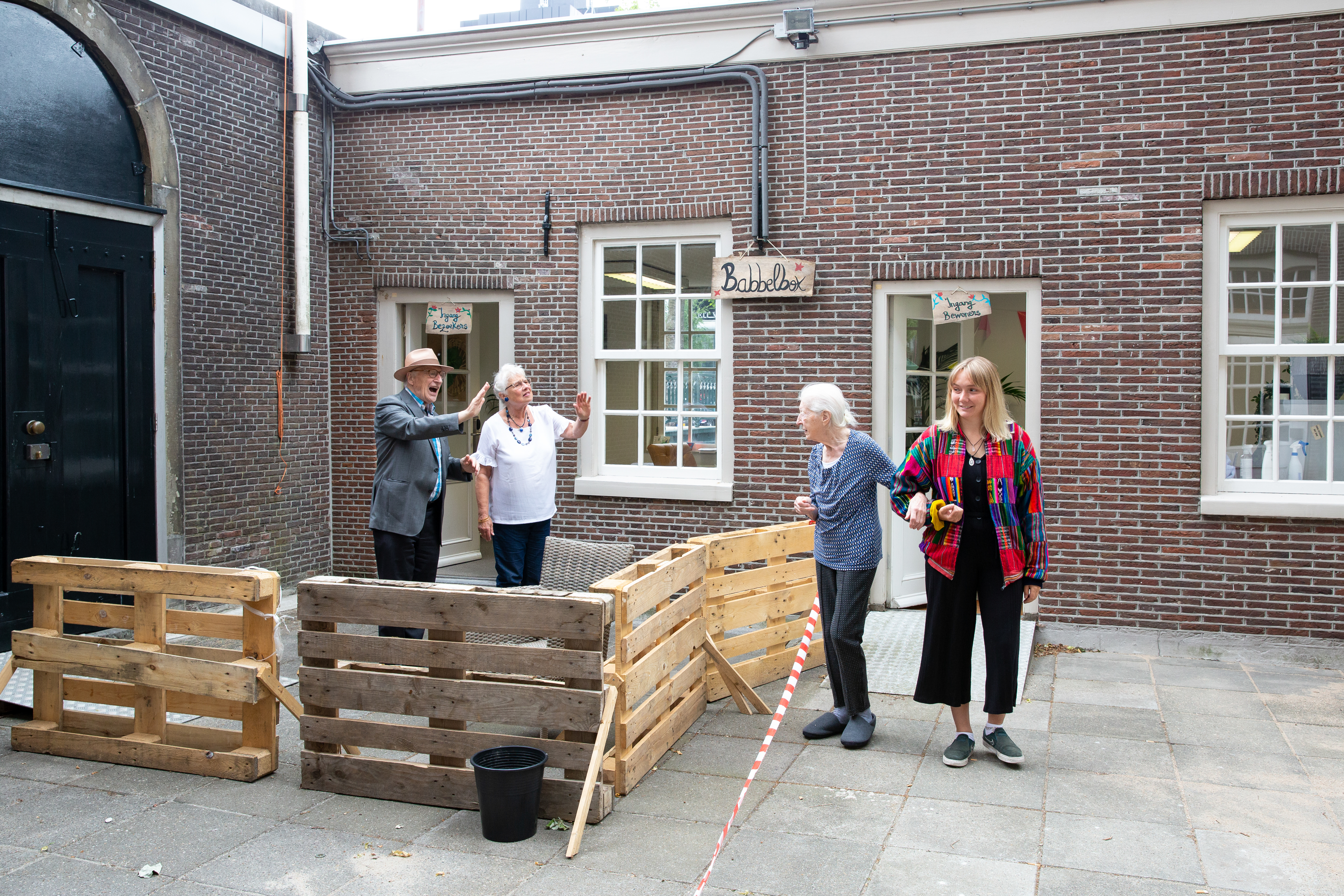 In de coronaperiode moesten alle verpleeghuizen hun deuren sluiten voor bezoek, maar via deze 'babbelbox' konden bewoners toch in contact komen met naasten. In aflevering 1 hoorde je al dat het kleine huisje dat voor de babbelbox werd gebruikt vroeger het portiershuisje was.