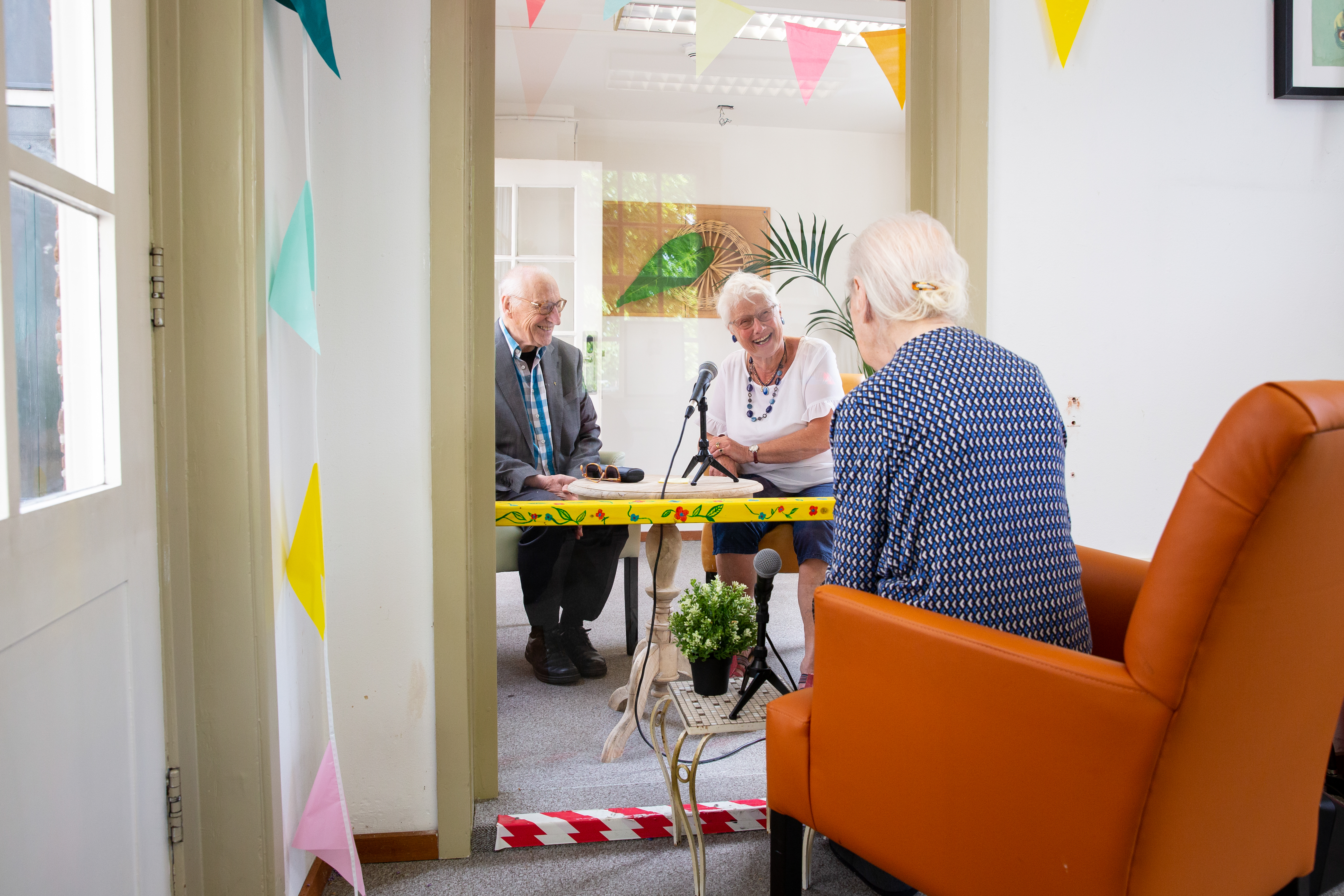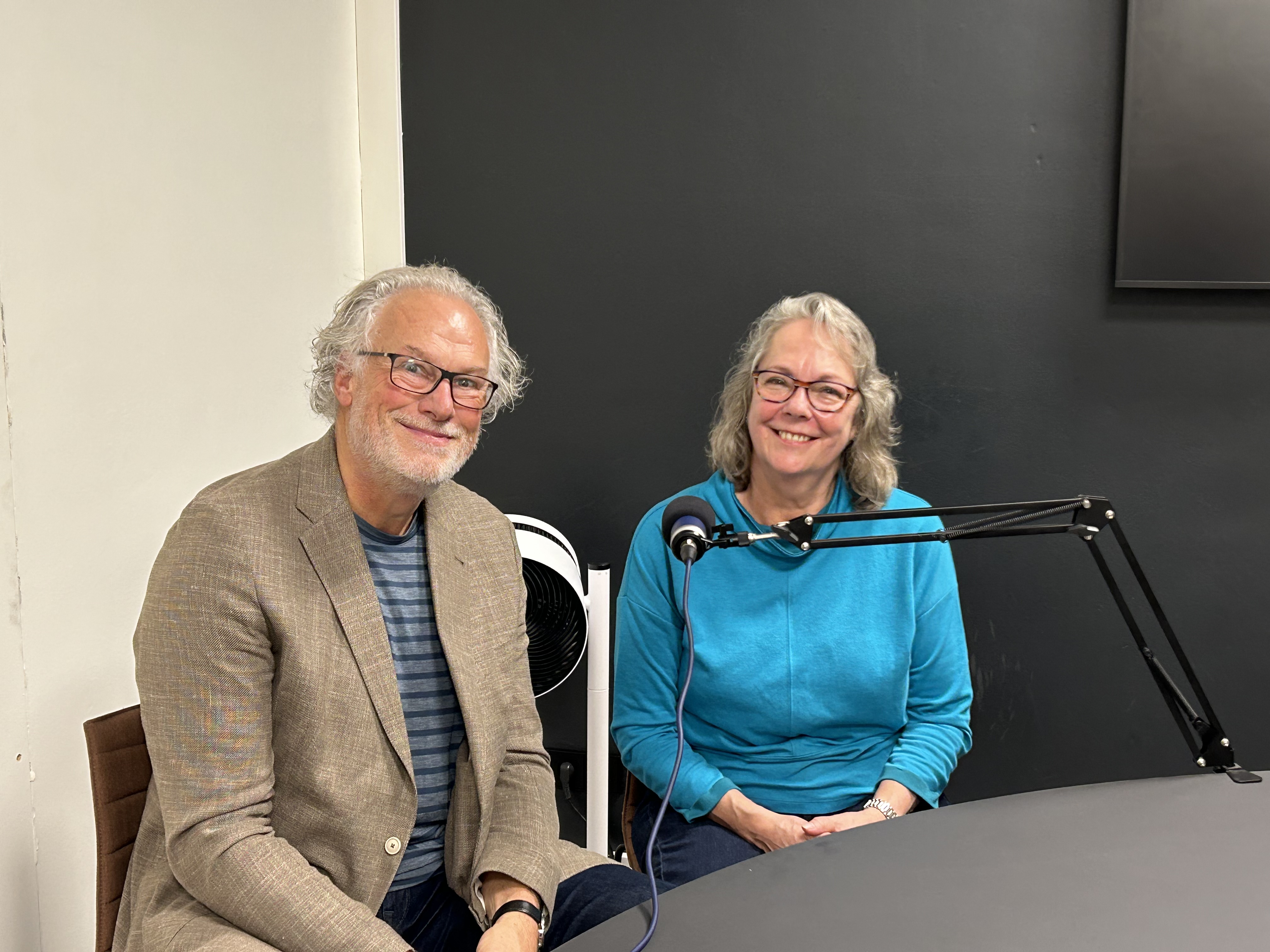 Rene Flart en Vera van Voskuijlen tijdens het opnemen van de podcast. Ze waren beide locatiemanager van het Dr. Sarphatihuis vanaf respectievelijk, 2000 en 2010.