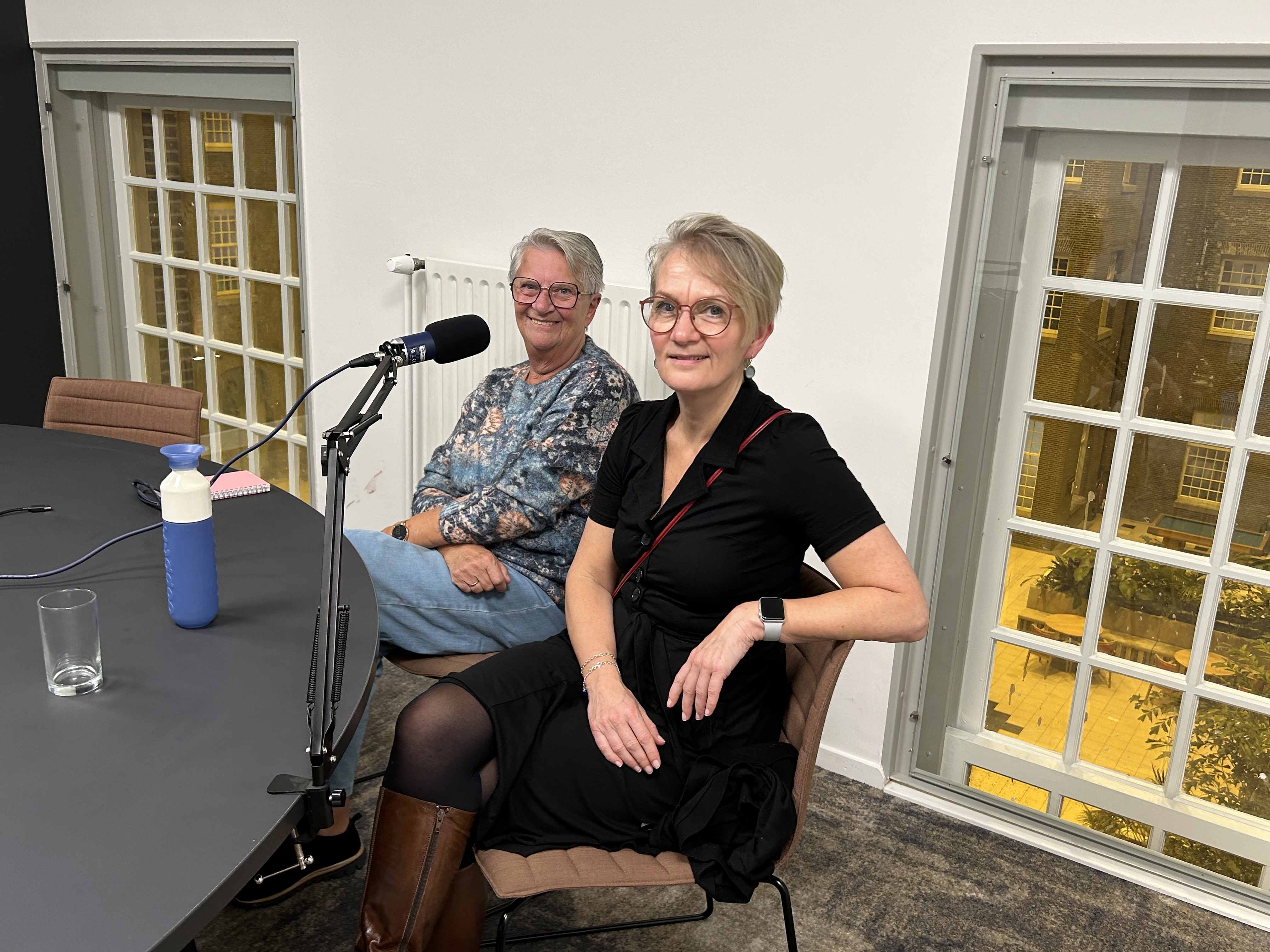 Lia Edel en Mary Verhey (cliëntenraad) tijdens het opnemen van de podcast.