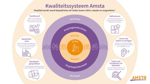 Amsta biedt persoonsgerichte en liefdevolle zorg en begeleiding aan de cliënten en bewoners. Iedere dag werken we eraan om dat steeds een beetje beter te doen. We werken constant aan kwalitatief goede zorg en blijven leren en verbeteren. Op deze pagina leest u hoe we dat doen.