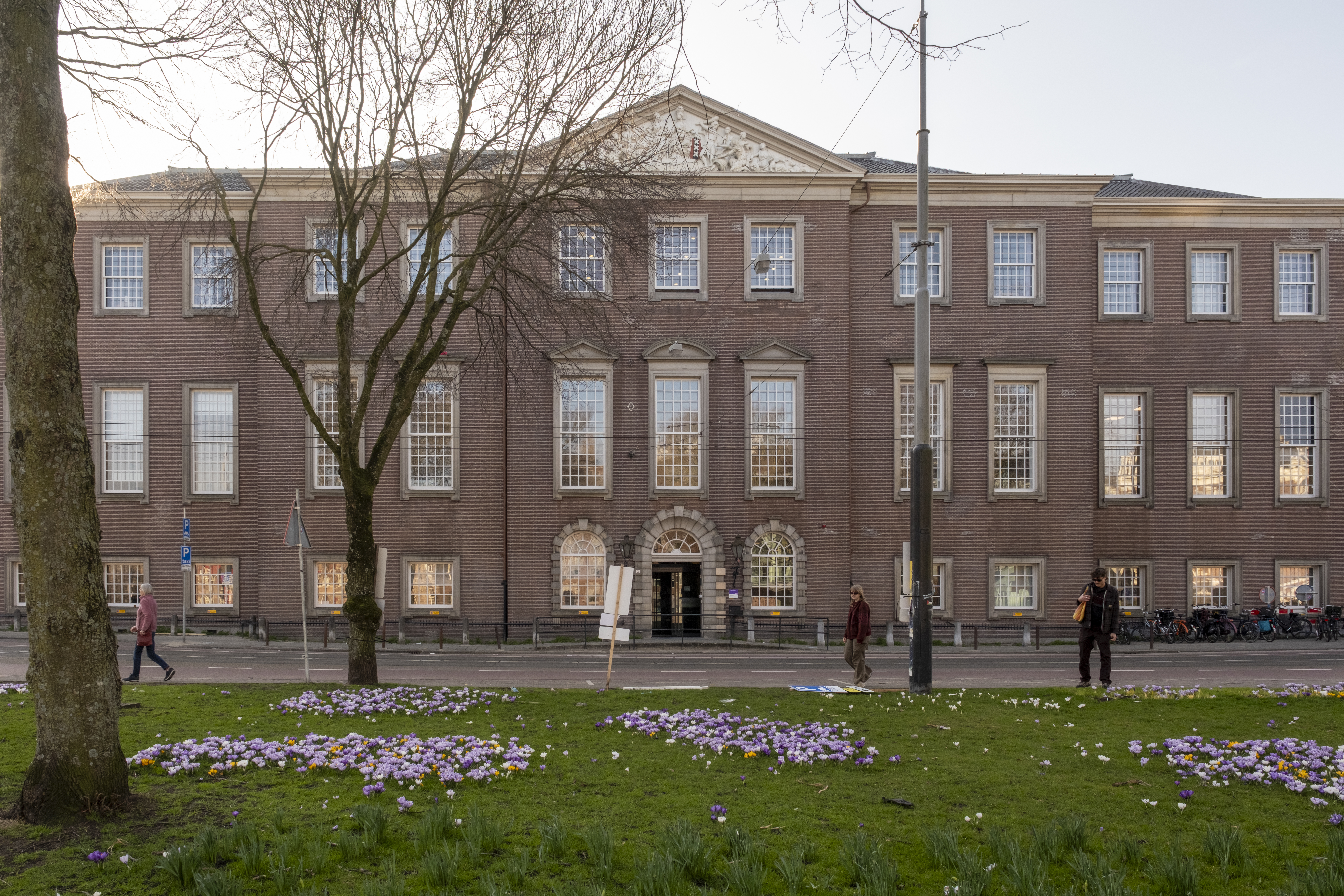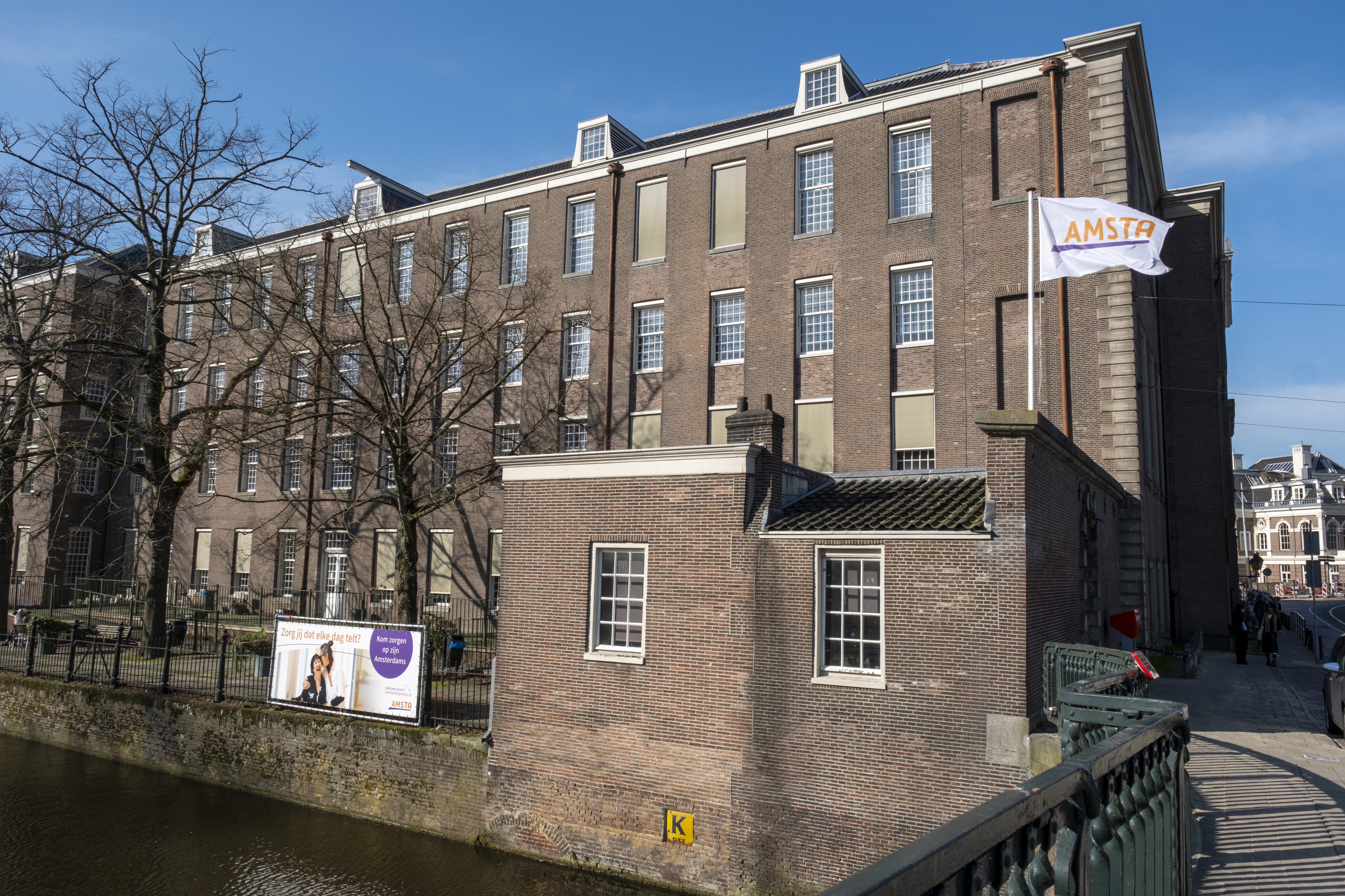 Het dr. Sarphatihuis vanaf de Nieuwe Prinsengracht. Hier zie je rechts het kleine gebouwtje dat vroeger het portiers huisje was. Nu wordt het gebruikt door de cliënten- en de ondernemingsraad.
