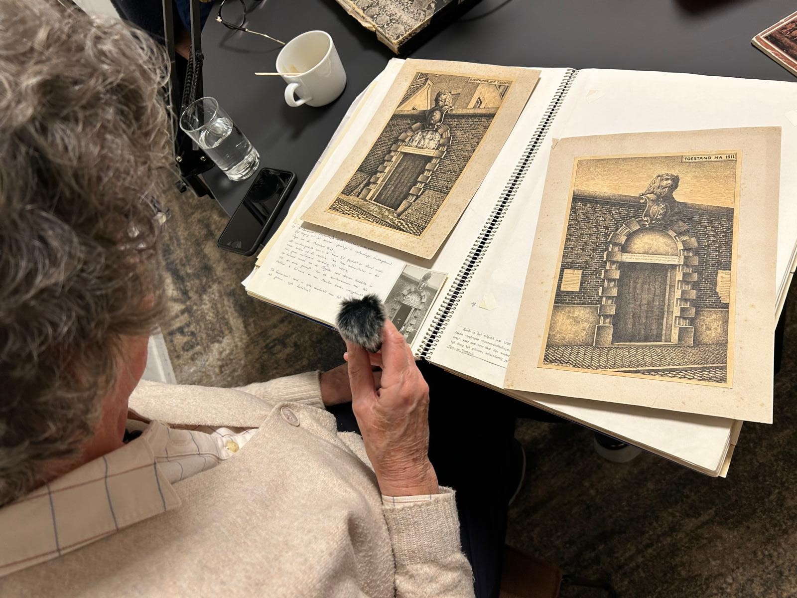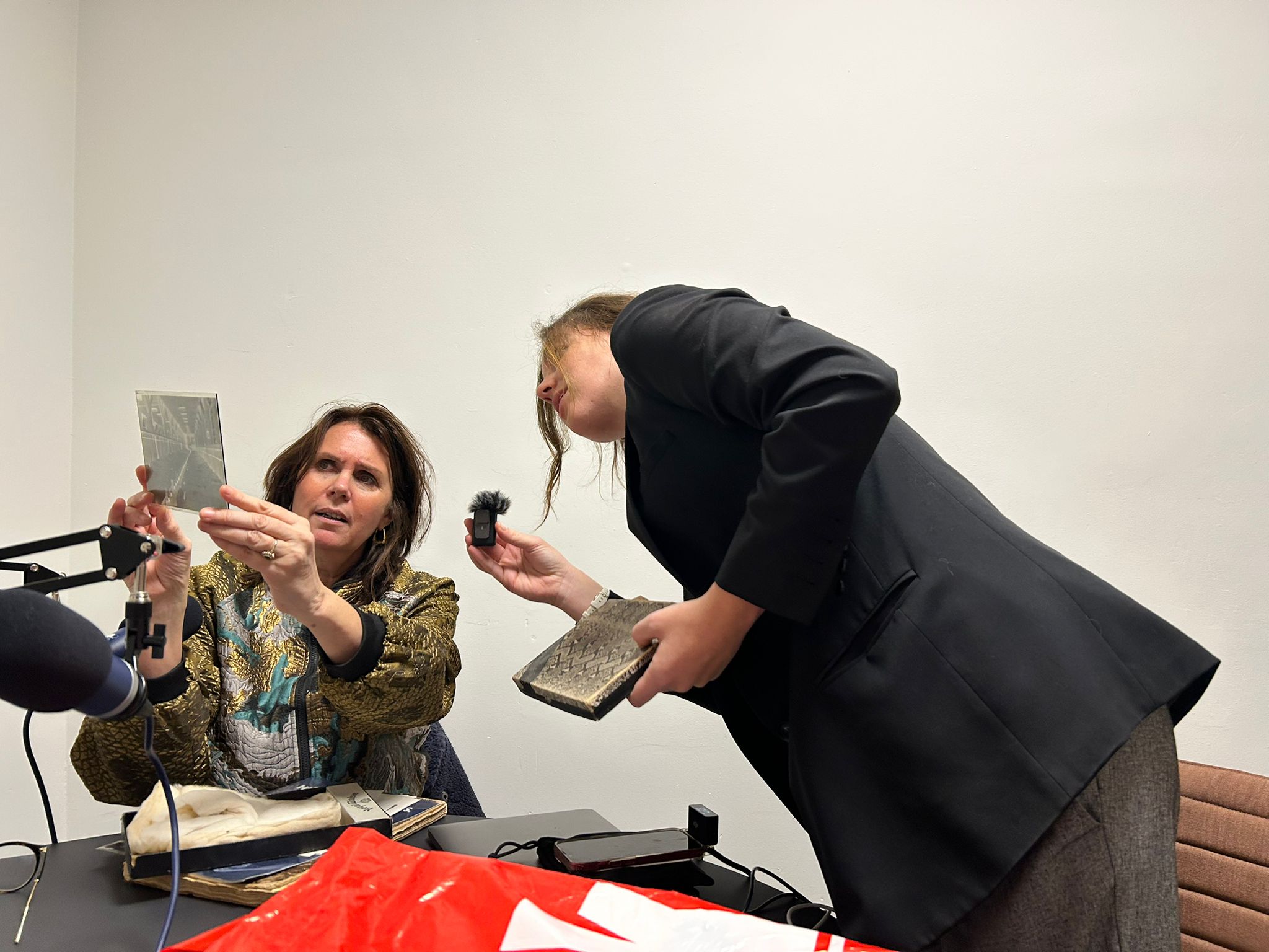 Hier staan we in de lift van de zolder naar beneden. Lia heeft net in een archiefkast haar oude kwaliteitshandboek gevonden, die ze 2007 schreef.